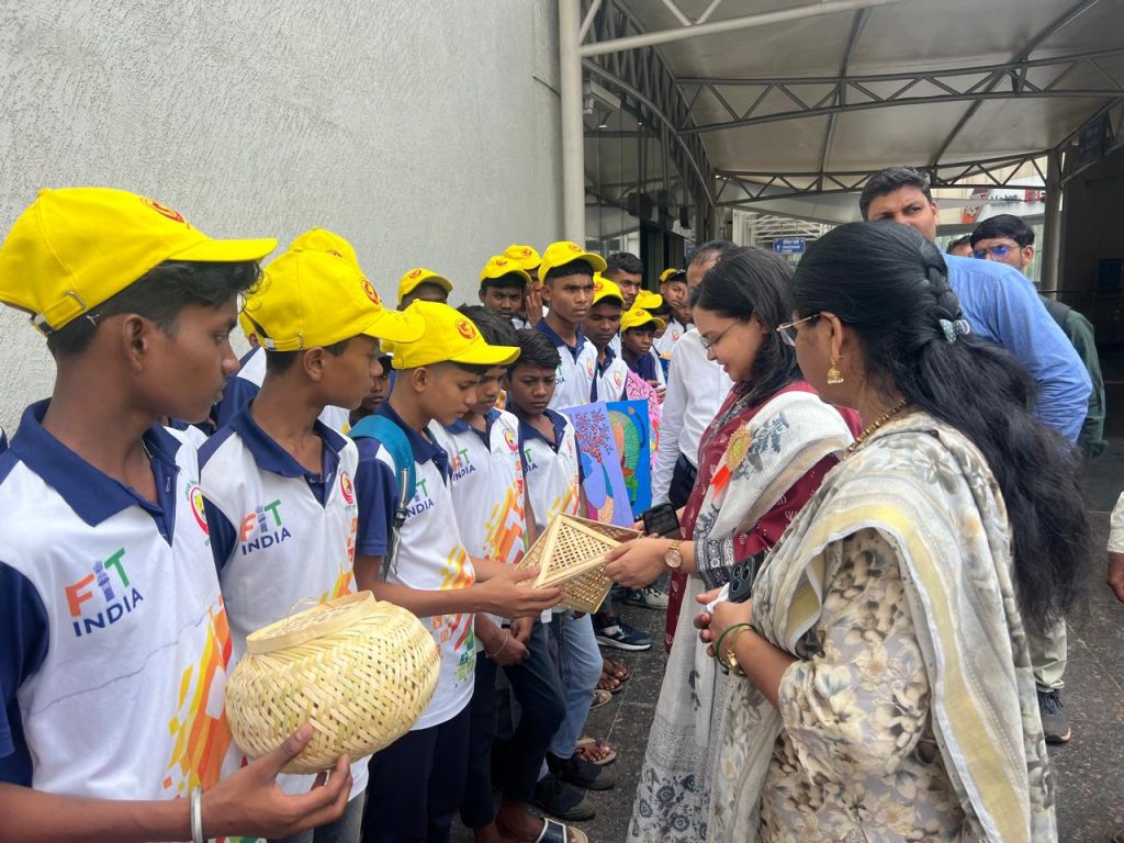 महिला अधिकारी यांच्या हातावरती रेखाटली मेहंदी..*         एकात्मिक आदिवासी विकास प्रकल्पांतर्गत शासकीय आश्रमशाळेतील विद्यार्थ्यांसाठी बौद्धिक व शारीरिक विकास उन्हाळी शिबिराचे आयोजन 1 ते 31 मे या कालावधीत बोरगाव येथील आश्रमशाळेत करण्यात आलेले आहे. यामधून अभ्यास दौऱ्याअंतर्गत नागपूर मेट्रो सफर आयोजन करण्यात आलेले होते मुलांचे समर कॅम्प मध्ये शिकलेल्या कलांचे दर्शन नागपूर मेट्रो मध्ये दिसून आले त्यांनी महामहीम राष्ट्रपती महोदया द्रौपदी मुर्मूजी यांचे धावत्या मेट्रोमध्ये रांगोळी द्वारे रेखाचित्र रेखाटले तसेच क्ले आर्टस् वाल्या मुलांनी भगवान बिरसा मुंडा जी यांची कलाकृती तयार केली.विद्यार्थ्यांचे सोबत अपर आयुक्त श्रीमती आयुषी सिंग (IAS) व उपायुक्त श्री.दिगांबर चव्हाण, श्री.उमेश काशिद प्रकल्प अधिकारी देवरी,श्री. नितीन इसोकर प्रकल्प अधिकारी नागपूर,सहाय्यक प्रकल्प श्री. झाडें, श्री.सोनावणे, श्री.भुसारी, कपिल शर्मा, श्रीम.उईके, मेश्राम, मुख्याध्यापक श्री.खेडकर यांनी मेट्रो ने प्रवास केला तसेच संवाद साधला.सं गितामधील विद्यार्थ्यांनी मेट्रो मध्ये आदिवासी संगित गायन केले तसेच मेहंदी काढणाऱ्या मुलींनी महिला अधिकारी यांचे हातावरती चालत्या मेट्रोमध्ये मेहंदी रेखाटली यामुळे विद्यार्थी अतिशय उत्साहीत दिसून आले.तसेच त्यांच्या चेहऱ्यावरती पहिल्यांदा मेट्रोमध्ये बसल्याचा आनंद स्पष्ट दिसून येत होता तसेच समर कॅम्प मध्ये शिकलेल्या कलेचा आत्मविश्वास दिसून येत होता.आदिवासी विद्यार्थ्यांचे साठी देवरी प्रकल्पाने ॲथलेटिक्स, संगीत, गोंडी-चित्रकला, क्ले-आर्ट, बांबू-आर्ट, मेहंदी, रांगोळी,नाशिक ढोल,आर्चरी, चेस व योगा आदींचे विविधअंगी बाबींचे प्रशिक्षण आयोजन केलेले आहे.मेट्रो प्रवासानंतर विद्यार्थ्यांनी रमण विज्ञान केंद्र येथेही भेट दिली यामध्ये मुलांना वेगवेगळ्या वैज्ञानिक बाबी जवळून पाहता आल्या. यामध्ये 3D शो मध्ये विद्यार्थ्यांनी थरार अनुभवला तर सौर तारामंडल मध्ये खगोलीय माहिती विद्यार्थ्यांना अनुभवता आली तसेच दैनंदिन जीवनात दिसणाऱ्या बाबींच्या मागचे विज्ञान माहिती झाल्यामुळे विद्यार्थ्यांना अभ्यासात गोडी वाढवून त्यांना तर्कशुद्ध विचार करण्यास प्रेरणा मिळेल असे विद्यार्थ्यांनी आमच्या सोबत बोलताना सांगितले.या एक दिवशीय अभ्यास दौऱ्यामध्ये आदिवासी मुलांनी खूपसाऱ्या बाबी पहिल्यांदाच अनुभवल्या, अपर आयुक्त मॅडम यांनी विद्यार्थ्यांनी तयार केलेल्या कलाकृती बांबू पासून विविध वस्तू, कॅनवास वरती रेखाटलेल्या गोंडी पेंटिंग, मेहंदी, रांगोळी, क्ले या सर्व कला पाहून मुलांचे भरभरून कौतुक केले.निश्चितच या दौऱ्यामधून आदिवासी मुलेही कुठेही कमी न